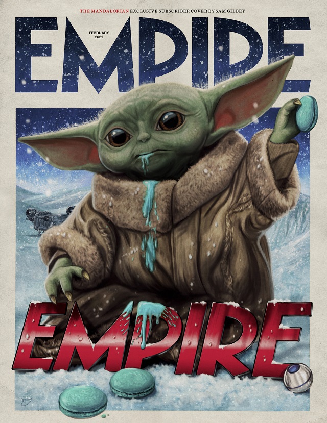 A segunda, entretanto, foi ilustrada por Sam Gilbey. Isso revisita um dos momentos mais engraçados da série, quando o amor de Grogu por biscoitos leva a melhor sobre ele depois de uma difícil jornada na Razor Crest.